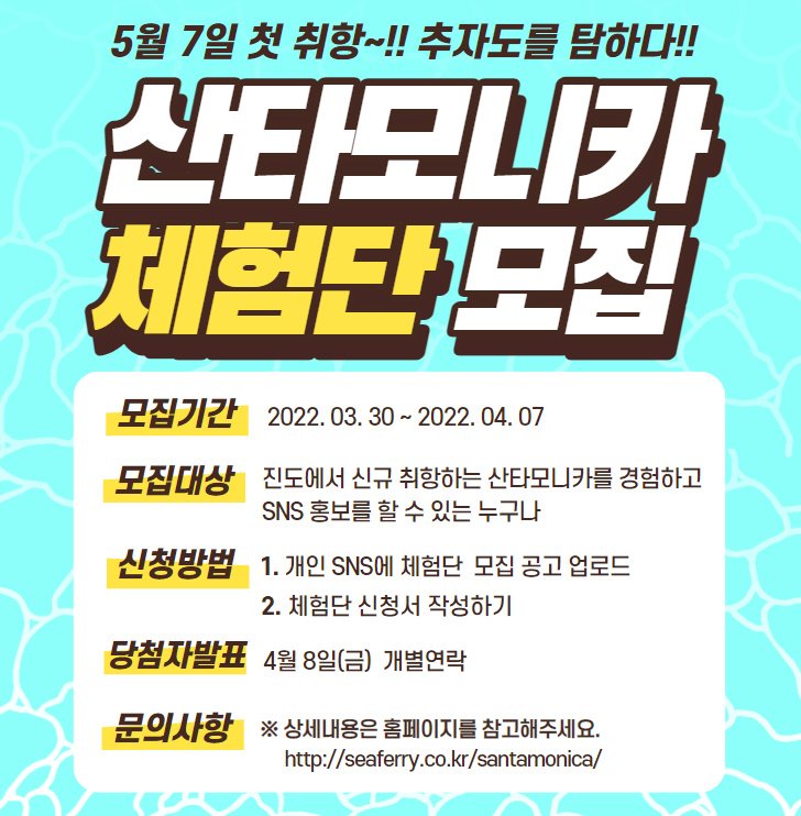 (필수해시태그: #산타모니카호 #진도제주 #진도추자 #진도항# 씨월드고속훼리)