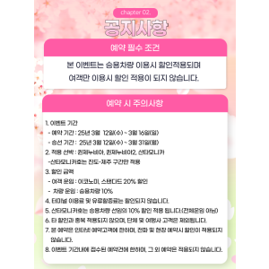 4. 운송인은 여객이 확약 후 여객의 사정으로 그 예약을 취소한 경우 여객은 1천원(편도 1인기준), 차량은 2천원 (편도 1대기준)의 예약 취소수수료를 징수할 수 있다.