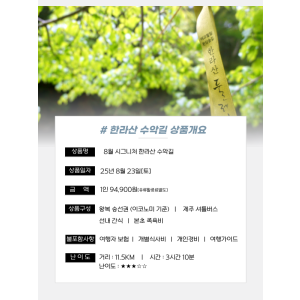 한라산 수악길 > 특별한날에 떠나는 기획상품